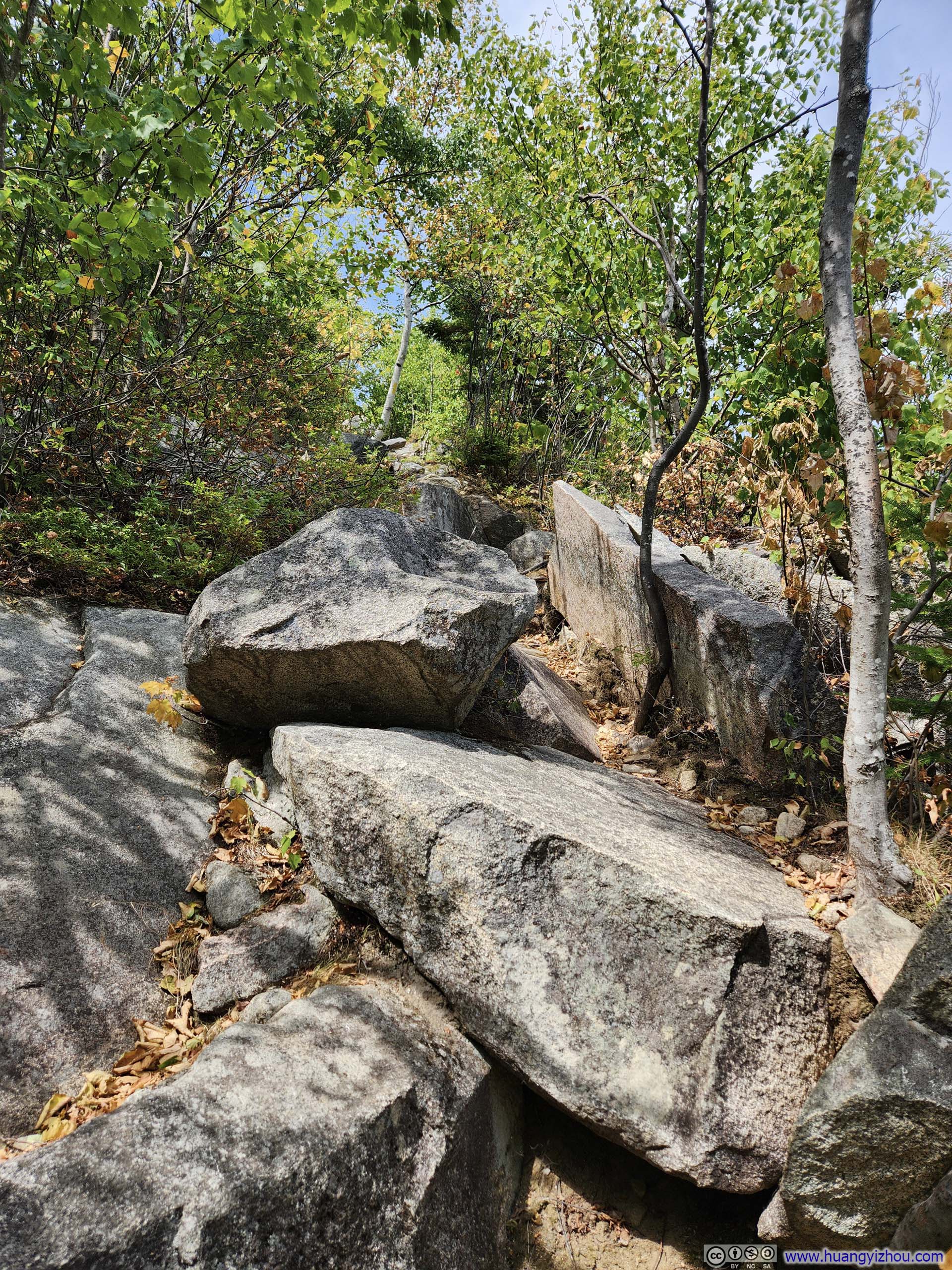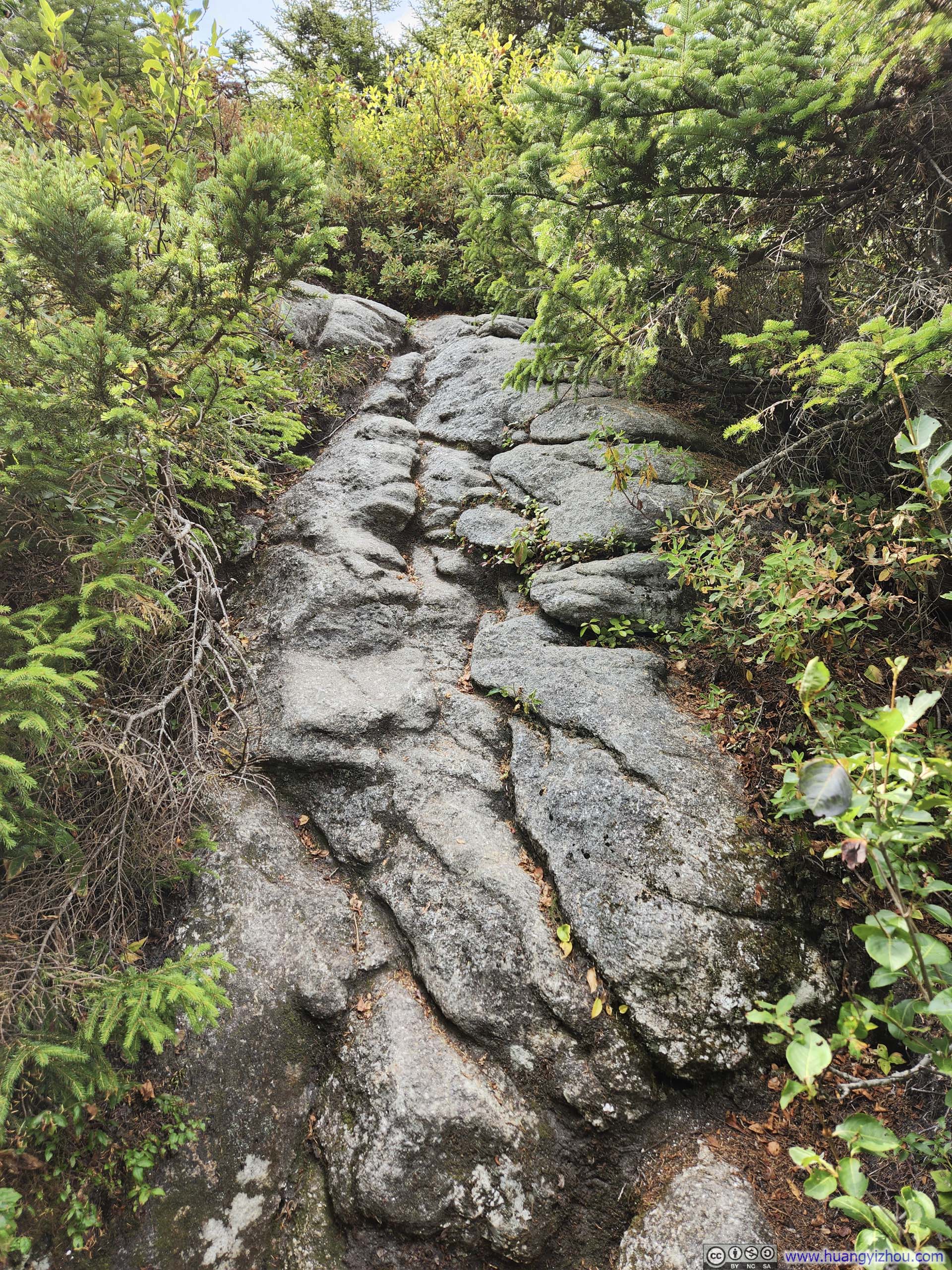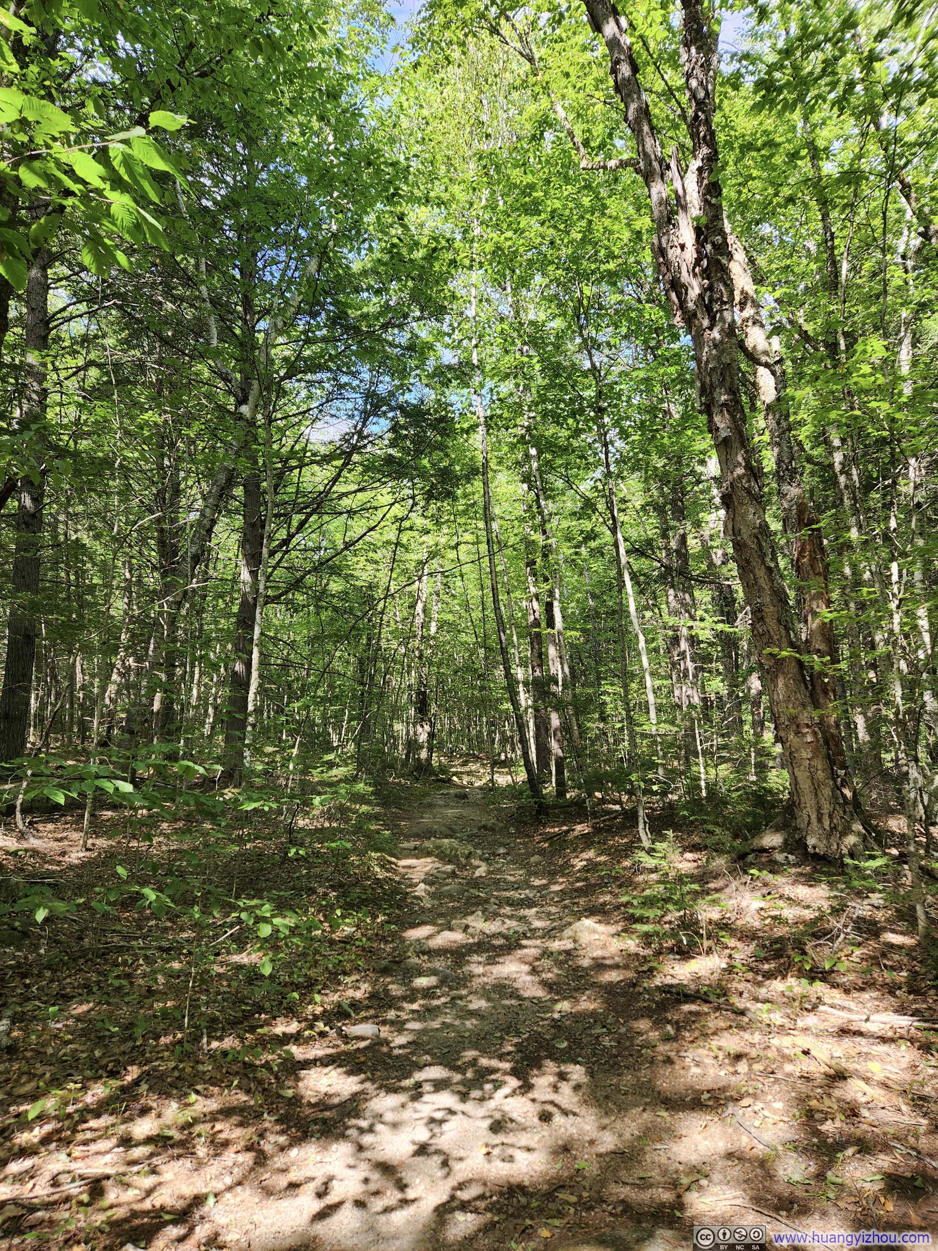 The trail started as a casual walk in the woods for about 1.2km (0.7mi) to an intersection near Emerald Pool, before forking into two branches. I made a slight left here, opting to traverse the loop clockwise—the recommended direction, as it would take me upward along the most technical “ledges” section toward South Baldface.