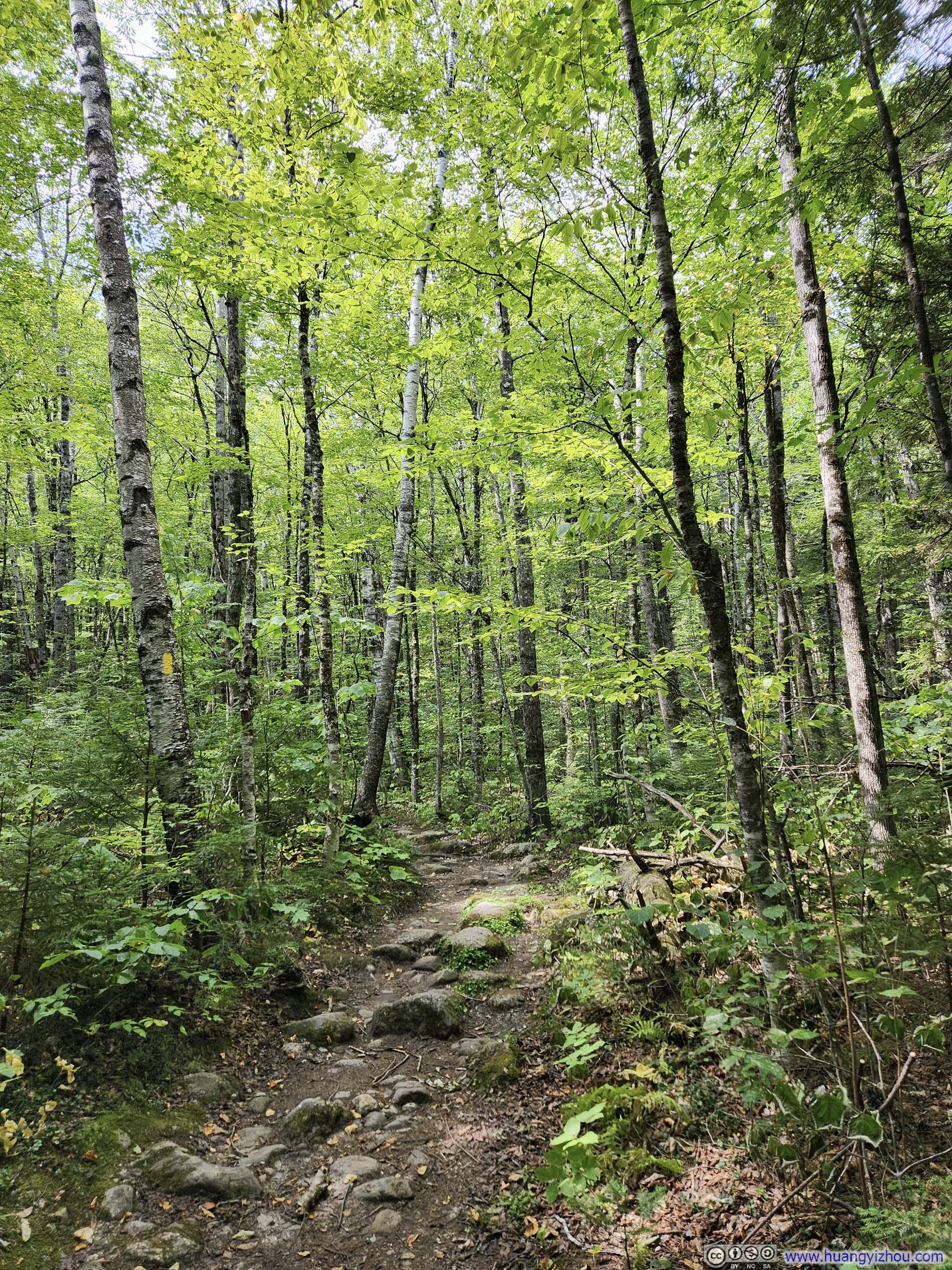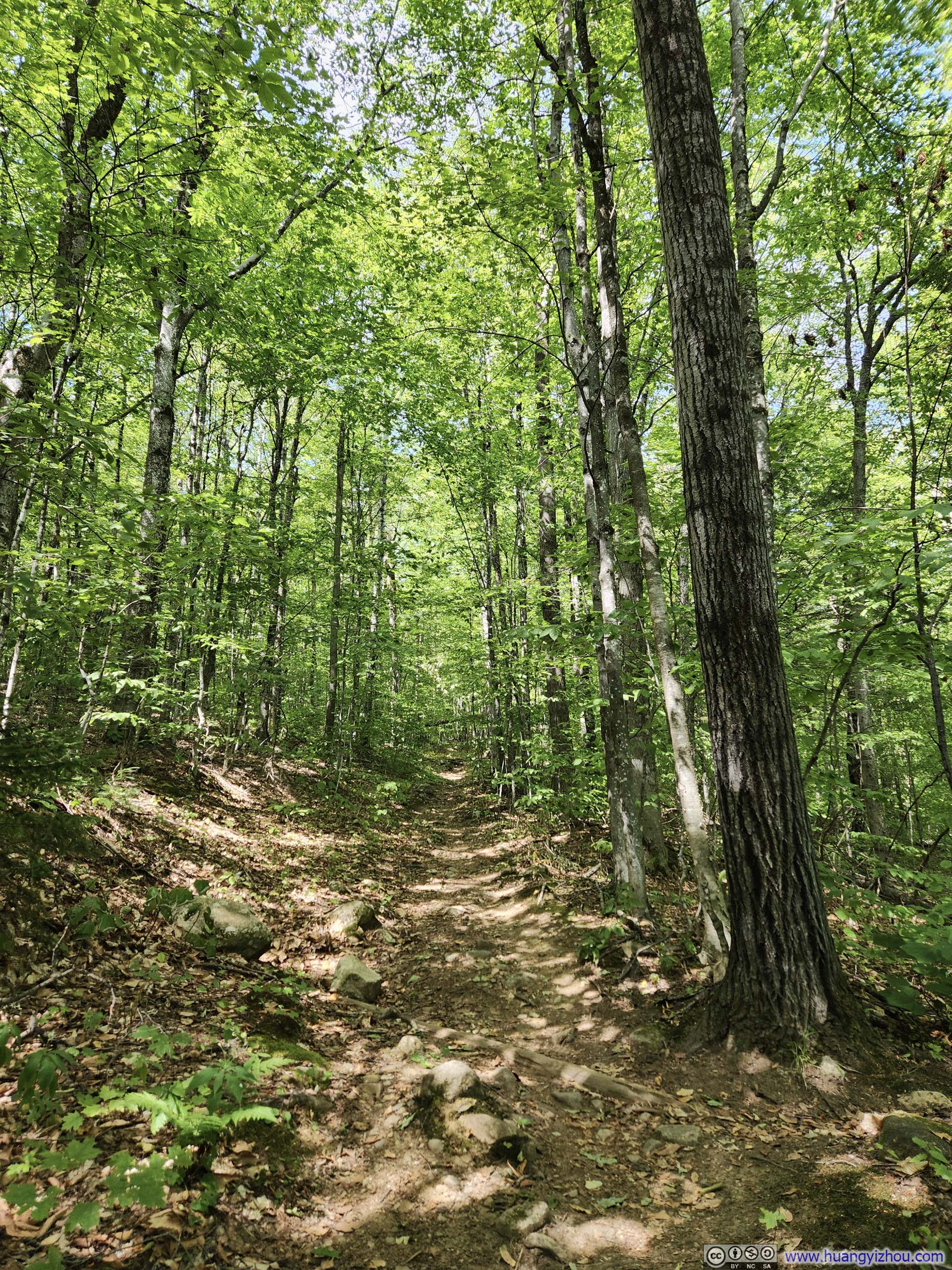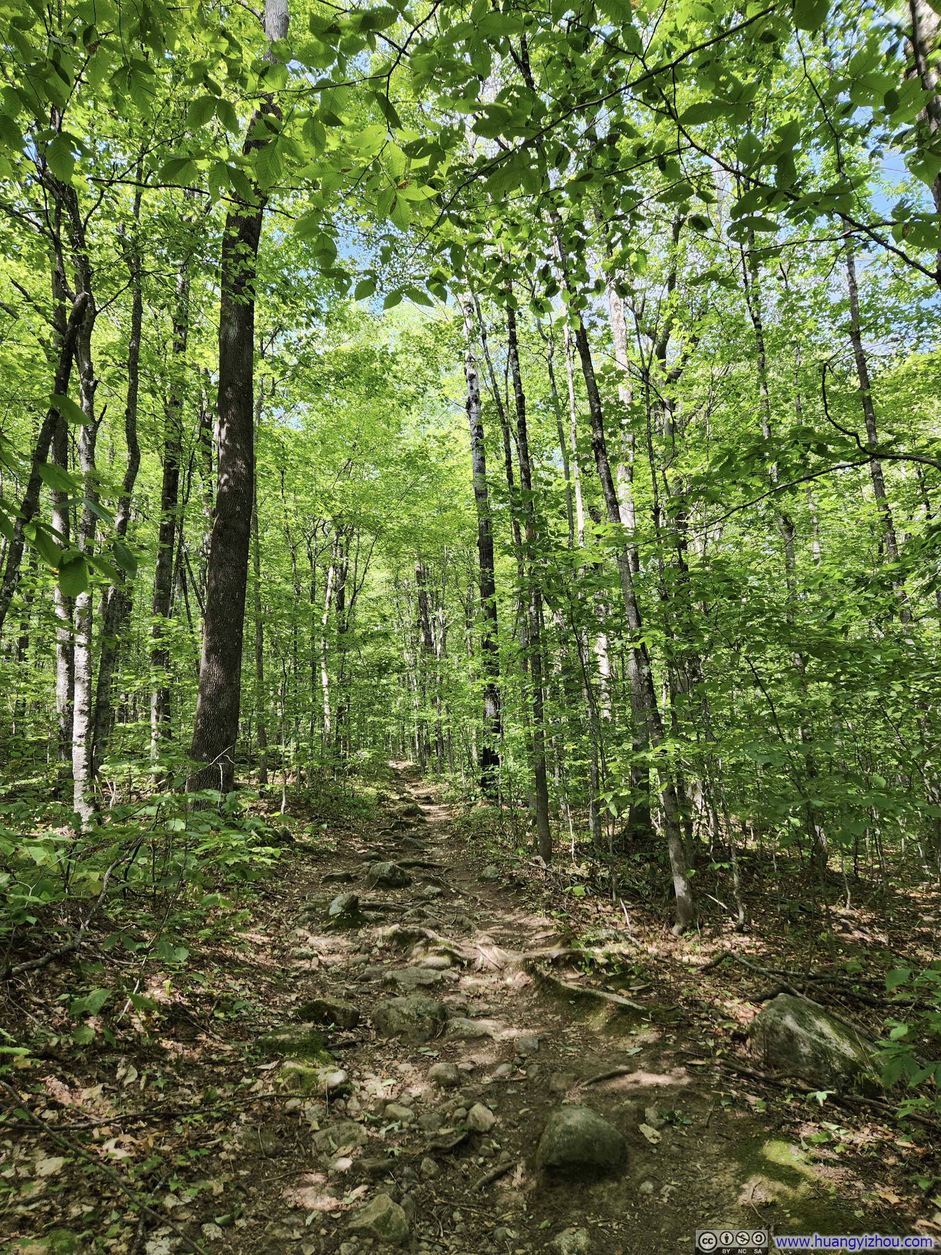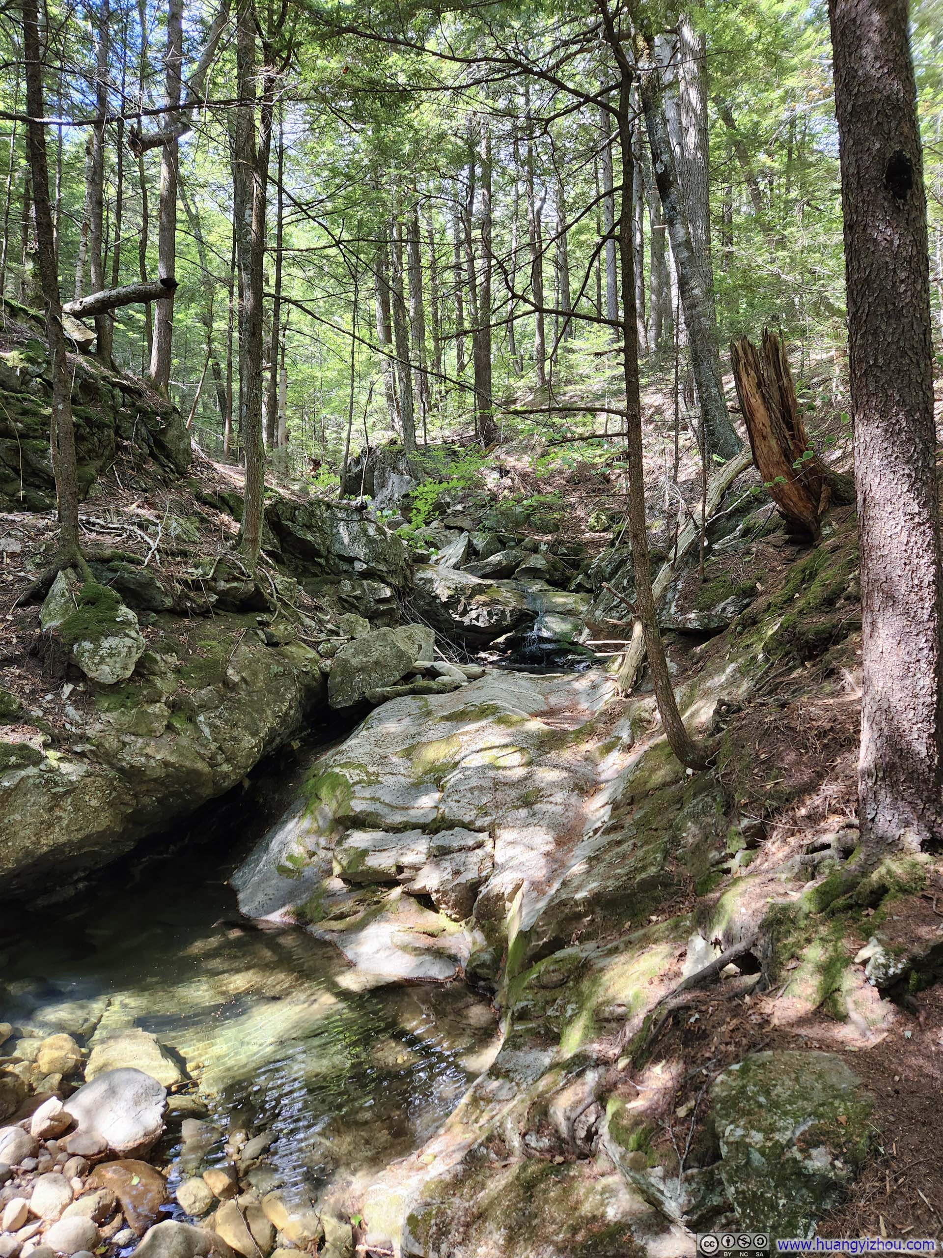 The trail started as a casual walk in the woods for about 1.2km (0.7mi) to an intersection near Emerald Pool, before forking into two branches. I made a slight left here, opting to traverse the loop clockwise—the recommended direction, as it would take me upward along the most technical “ledges” section toward South Baldface.