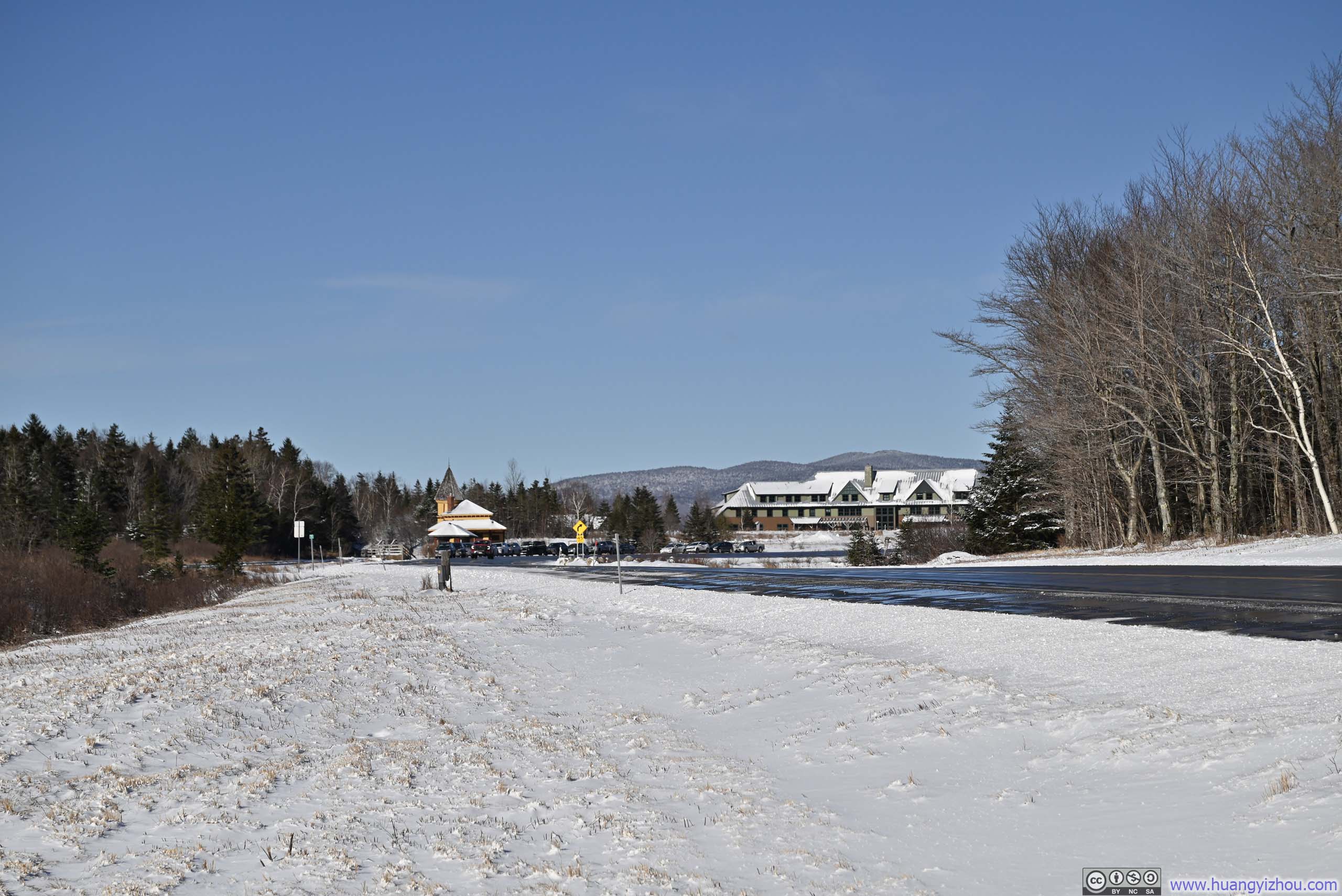 The previous night had brought a heavy storm with strong winds to the White Mountains. The weather forecast indicated that the winds would relent by morning, giving way to partial cloud cover through the day. And so, on the morning of December 20th, I waited for sunrise, confirmed via webcam that the mountain roads had largely been cleared, and set off for the mountains. (The delay was also partially due to my struggles to wake up early.) As it turned out, while I-93 was free of snow, US-3 had a few snowy patches. Along the way, I saw a car crashed on the shoulders, and some crew repairing a downed powerline.